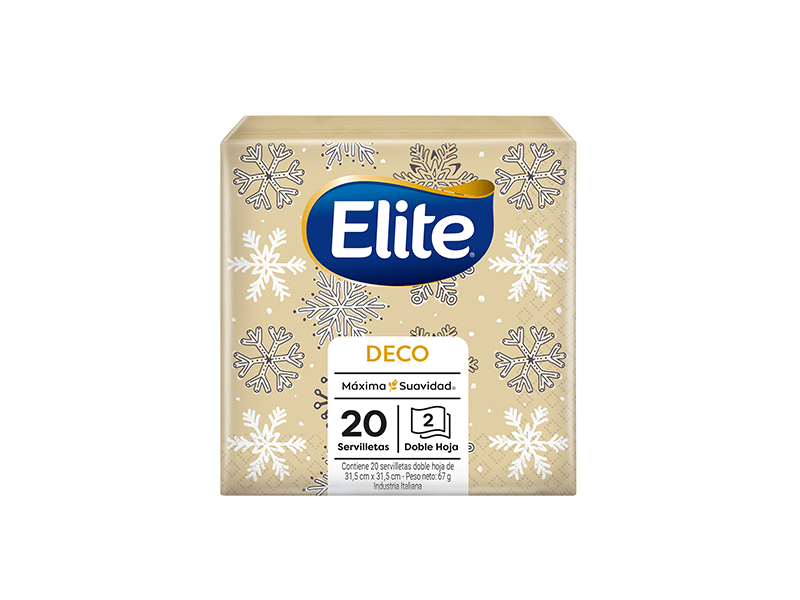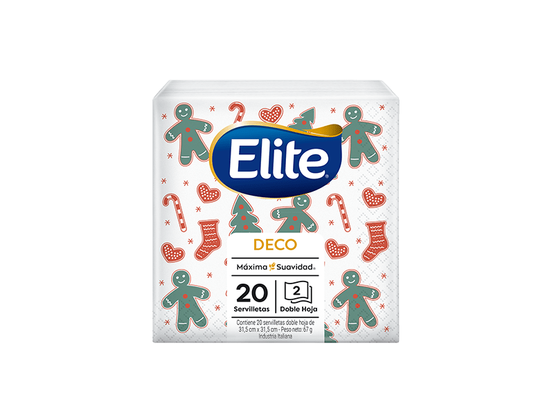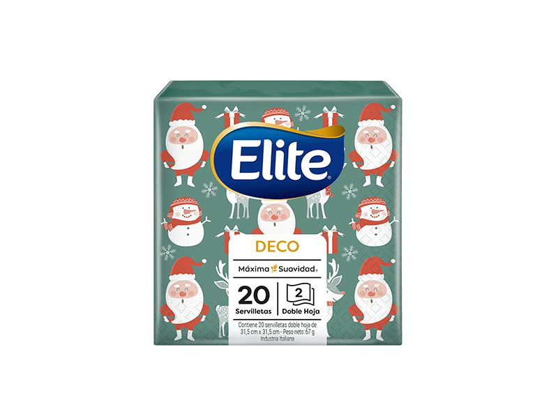 Servilletas Elite Deco, con cuatro variados diseños navideños para acomparte en tus momentos especiales. Servilletas doble hoja dobladas en 4.